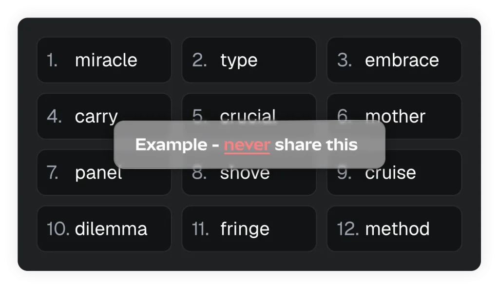 Nunca compartas la frase con nadie; ningún soporte legítimo te pedirá la frase.